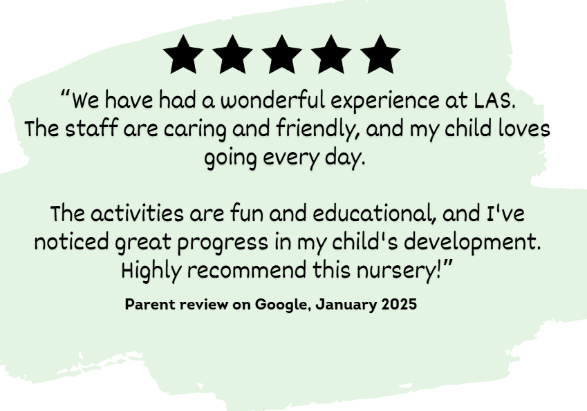 LAS Nursery is an independent day nursery for children aged 6-months to 5-years. We are based in Hoxton London and open from 8am-6pm, Monday to Friday. We are Ofsted registered and were graded 'good' in our last inspection in May 2023.